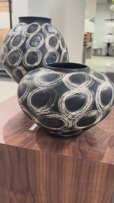 Wren Vase - Black Circular Patterned Ceramic Focal Vase
